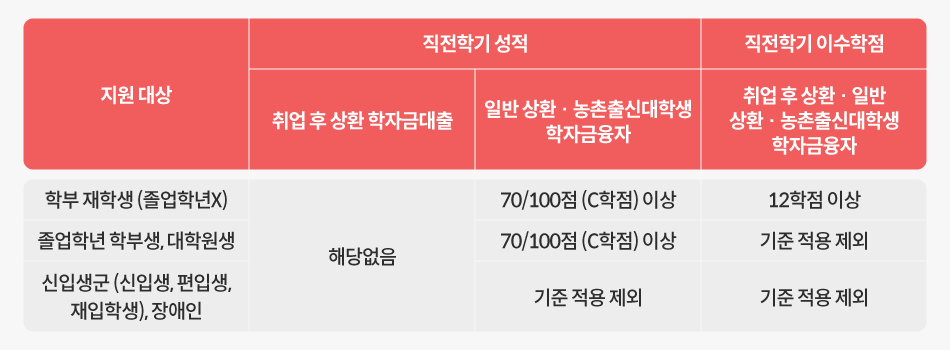 ※ 한국장학재단과 협약한 국내 고등교육기관 학생 (연령제한 없음)