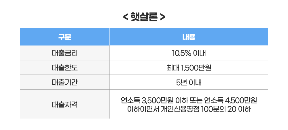 - 연소득 3,500만원 이하 (연소득 4,500만원 이하이면서 신용 등급 6~10등급 이내)