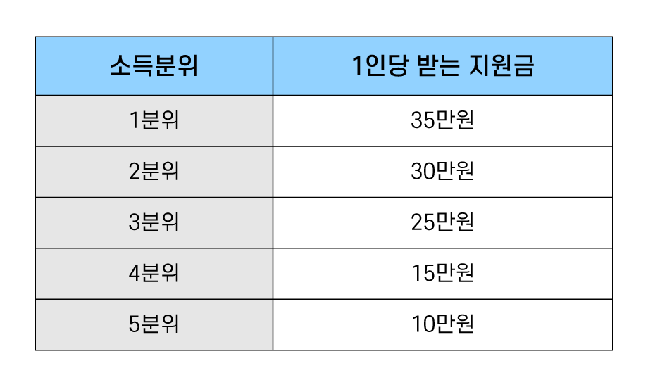 전국민이 일상으로 돌아와 회복하게 하기 위한 것으로 1인 최소 10만원부터 최대 35만원까지 지급받으실 수 있는 제도입니다.